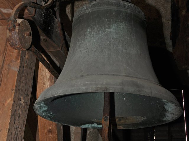 Na věži vyzvánějí k větší cti a slávě Boží tři zvony: